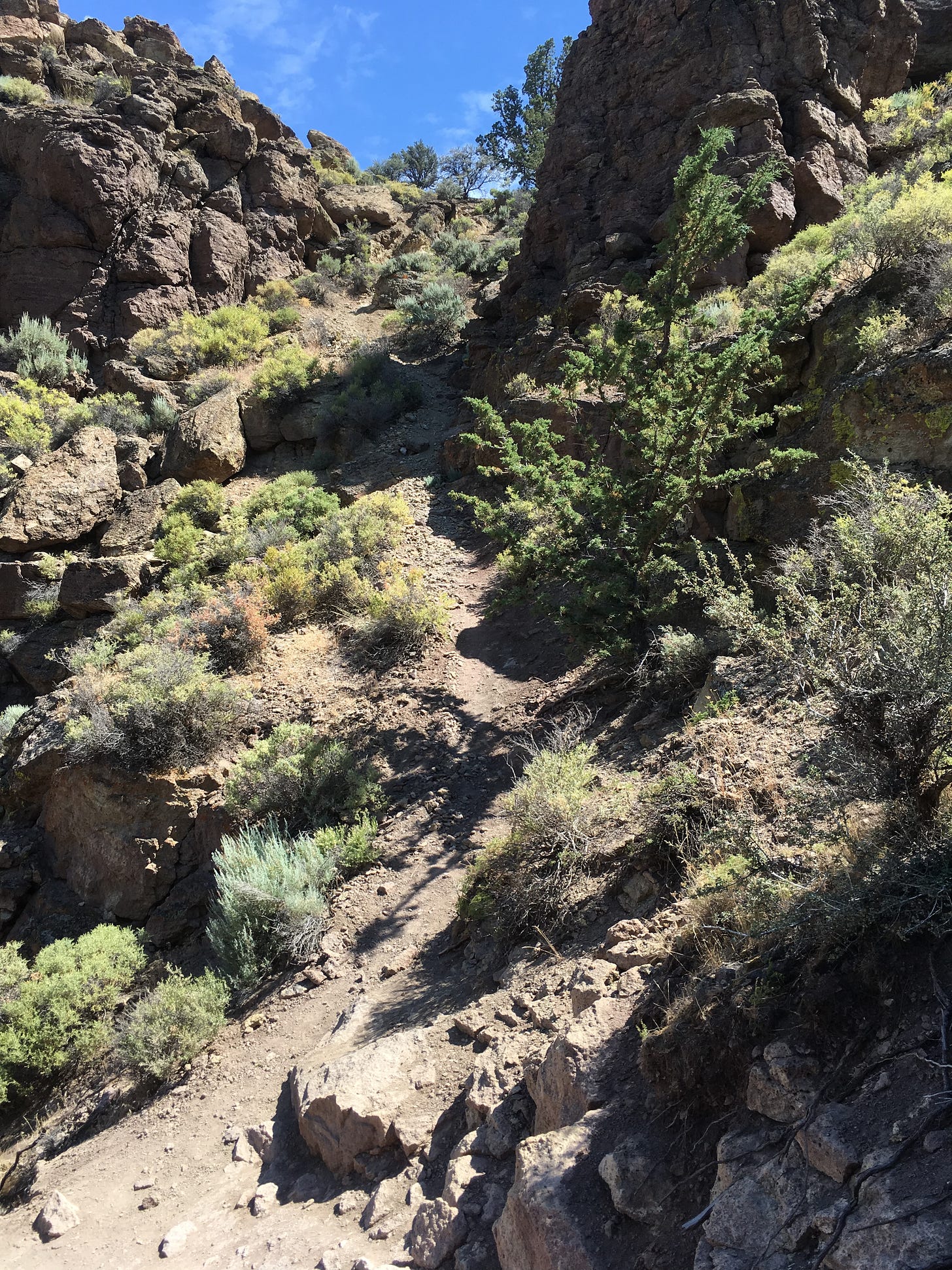 Misery Ridge, Smith Rock, Oregon. This was not the trail. Oops. I had to slide back down on my backside.