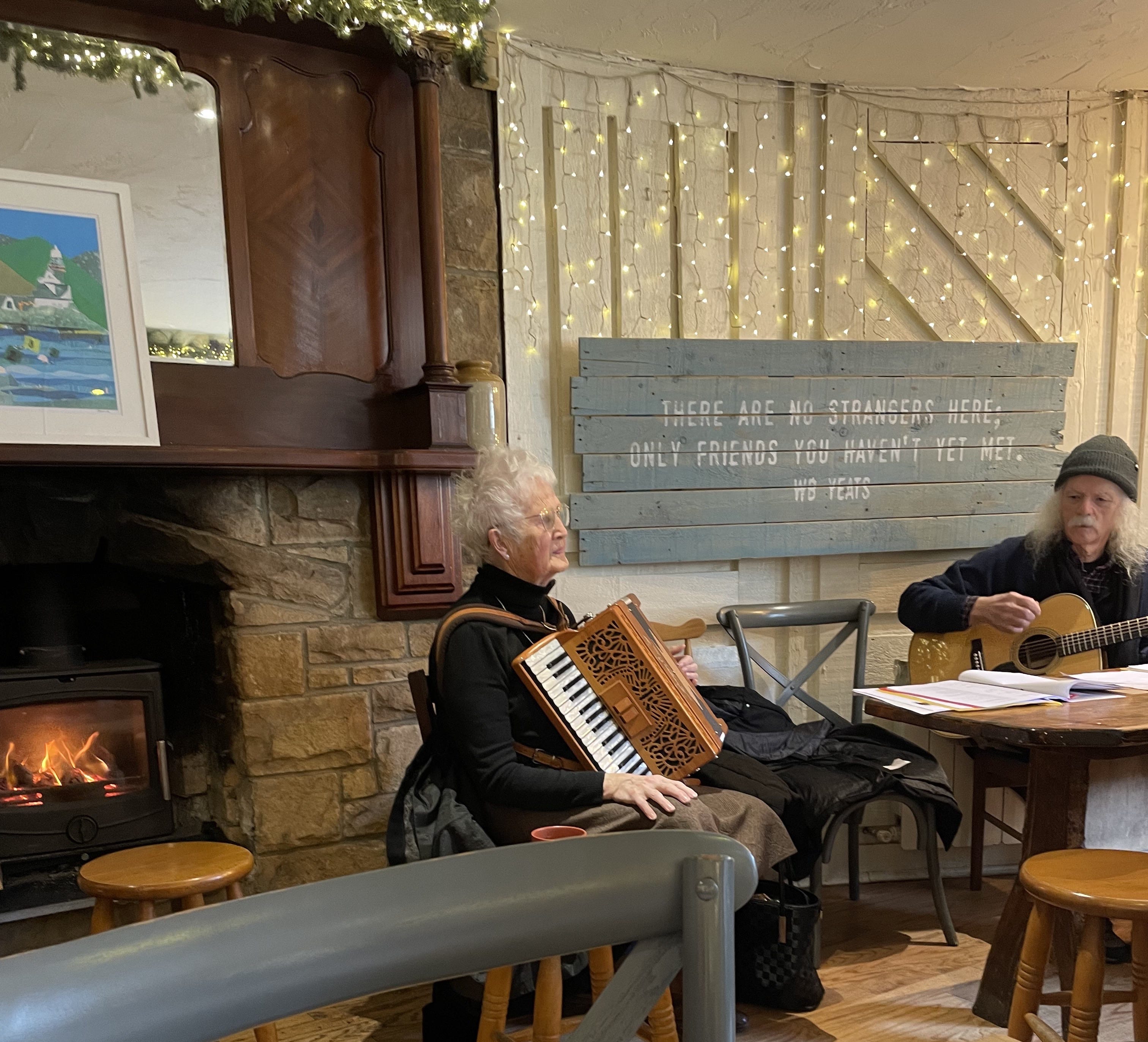 Here are two musicians who have taken over my regular seat at Anne’s where I write my Substack posts. They were leading a community singalong that day.